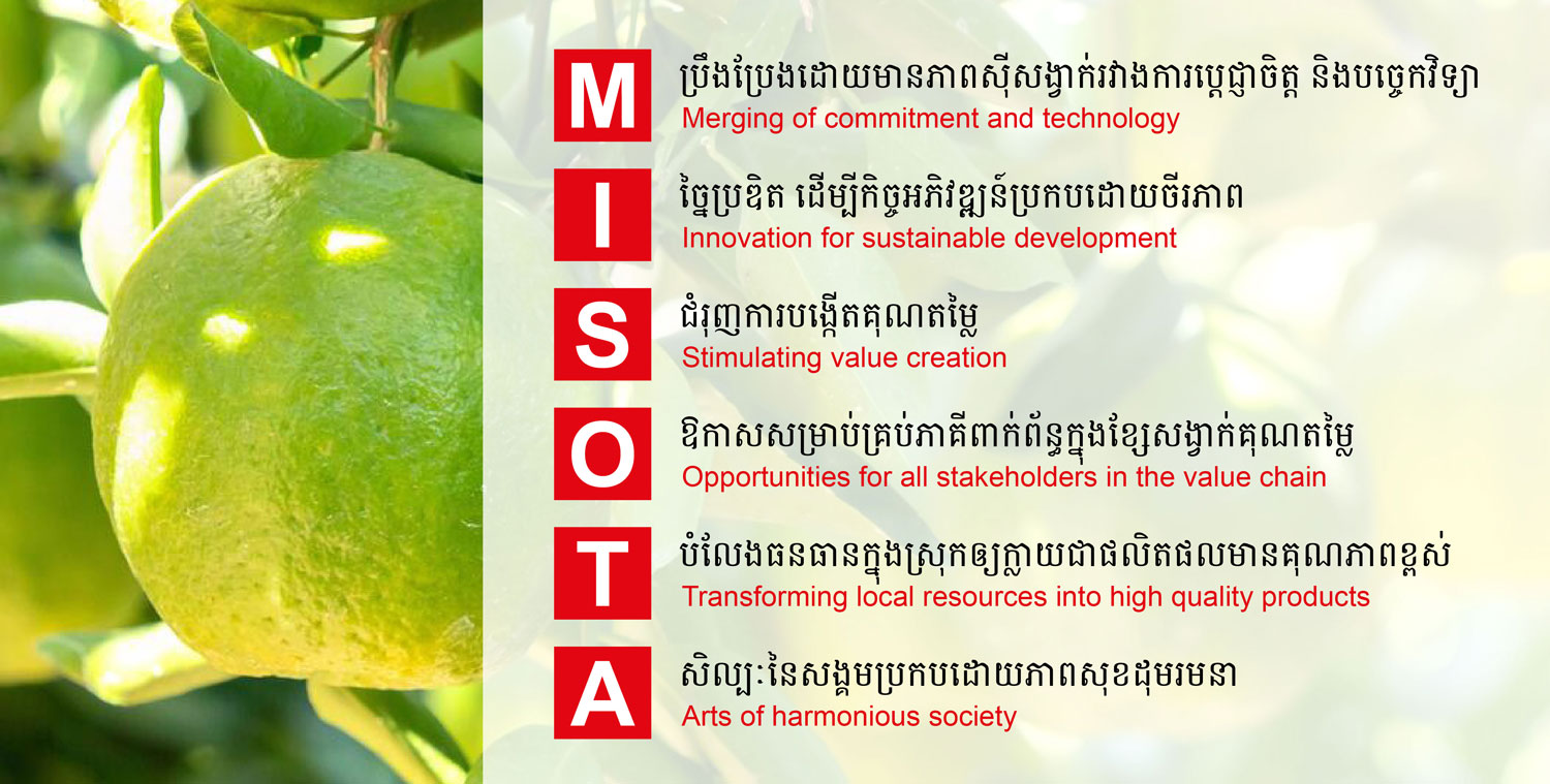Our mission is to convert local agricultural products, including mangoes, pineapples, Pursat oranges, mandarins, bananas, and dragon fruits, into nutritious and flavorful foods and beverages that adhere to international food safety and quality standards (HACCP, Halal, Kosher, BRCGS).