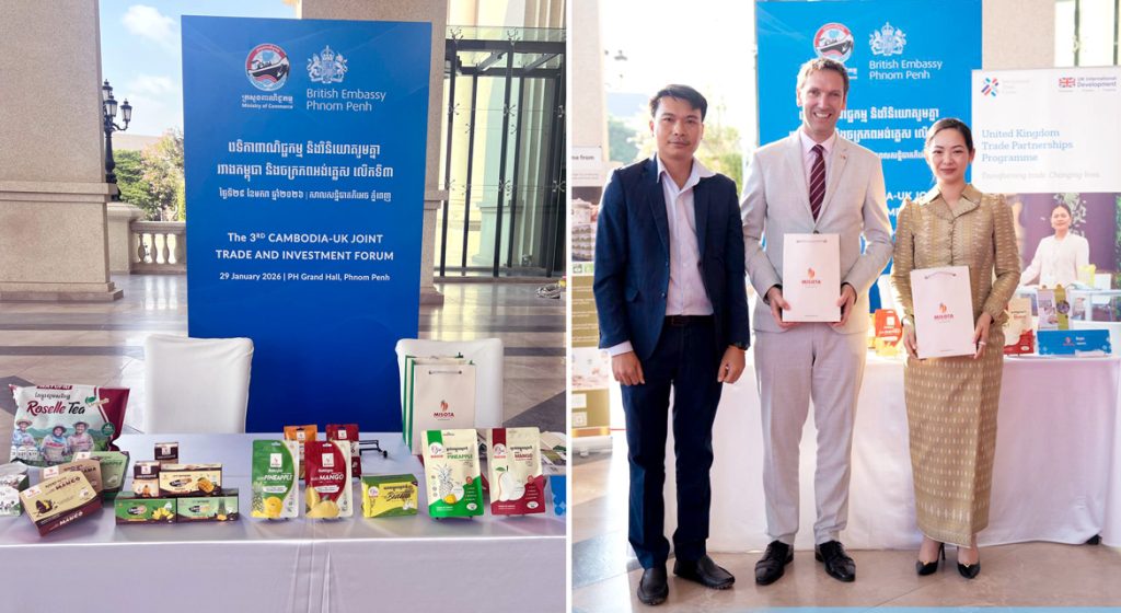 ភ្នំពេញ ថ្ងៃទី២៩ ខែមករា ឆ្នាំ២០២៦ — ក្រុមហ៊ុន មិសុតា (Misota) ដែលជាក្រុមហ៊ុនឈានមុខក្នុងឧស្សាហកម្មកែច្នៃផ្លែឈើមានមូលដ្ឋាននៅខេត្តបាត់ដំបង មានកិត្តិយសយ៉ាងខ្ពង់ខ្ពស់ក្នុងការដាក់តាំងបង្ហាញនូវផលិតផលផ្លែឈើសម្ងួតធម្មជាតិ និង តែផ្កាម្ជូរល្មមសរីរាង្គ (Organic roselle tea) ដ៏ល្បីល្បាញរបស់ខ្លួន ក្នុងវេទិកាពាណិជ្ជកម្ម និងវិនិយោគរួមគ្នាកម្ពុជា-ចក្រភពអង់គ្លេស (JTIF) លើកទី៣ ដែលប្រព្រឹត្តទៅនៅថ្ងៃនេះ។ វេទិកាដ៏មានកិត្យានុភាពនេះត្រូវបានសហការរៀបចំឡើងដោយ ក្រសួងពាណិជ្ជកម្ម (MOC) និង ស្ថានទូតចក្រភពអង់គ្លេសប្រចាំកម្ពុជា។